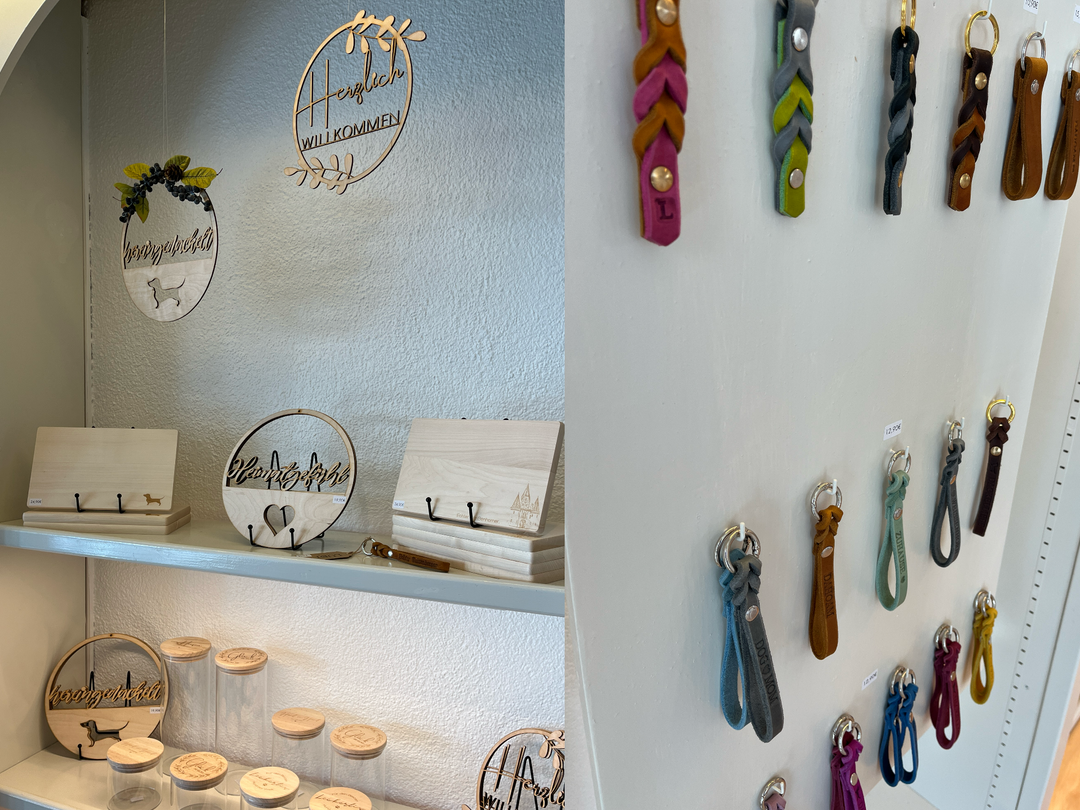 Unser kleiner Shop ist ein wahres Paradies für alle Hundeliebhaber und die, die auf der Suche nach einzigartigen Geschenken sind. Hier dreht sich alles um hochwertige Halsbänder, Leinen und kleine, liebevoll gestaltete Accessoires wie Schlüsselanhänger.